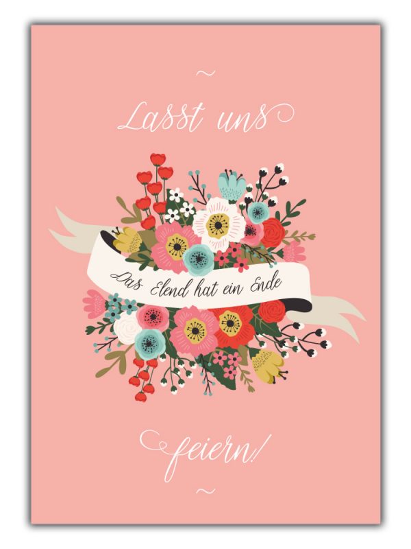 Unsere Blumend Elend Karte gibt es in den Format Din-A6 auf unserem berühmten 250 Gramm Scheidungskarton.