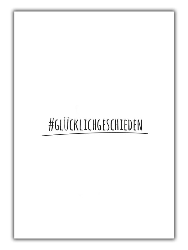 Unsere #glücklichgeschieden Karte gibt es in den Format A6 auf unserem berühmten 250 Gramm Scheidungskarton.