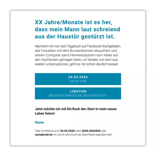 Wir freuen uns über die Hashtags #Scheidungskarten #scheidungsparty