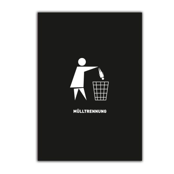 Unsere Mülltrennung Karte gibt es in den Format Din A6 auf unserem berühmten 250 Gramm Scheidungskarton.