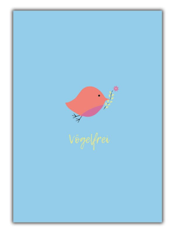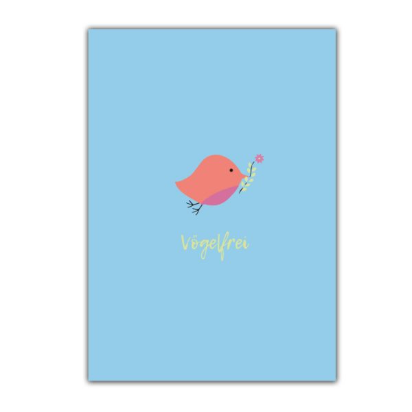 Unsere Vögelfrei Karte gibt es in den Format Din A6 auf unserem berühmten 250 Gramm Scheidungskarton.