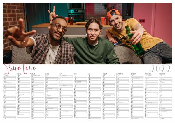 Dein persönlicher Wandkalender für 2022. Ganz einfach individuell gestalten und eigenes Foto hochladen.
