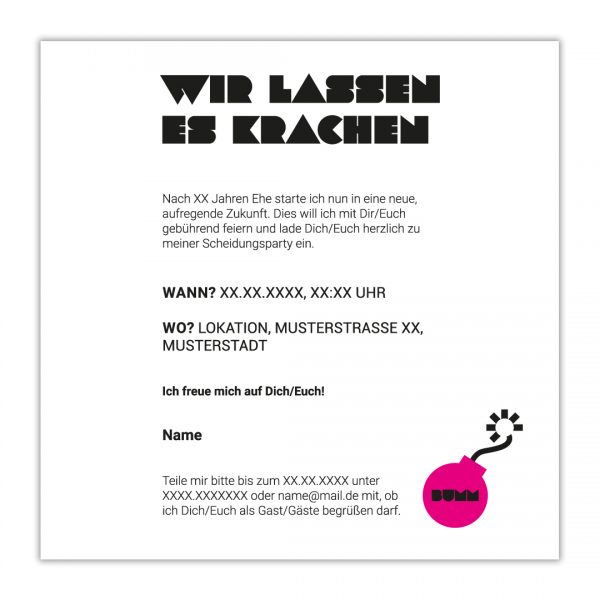 Diese Karte ist speziell für Instagram konzipiert und lässt wie die Druckkarten individuell durch den Konfigurator anpassen. Anschließend könnt ihr die Karten dann Herunterladen und in eurem Design posten. #Scheidungskarten#scheidungsparty